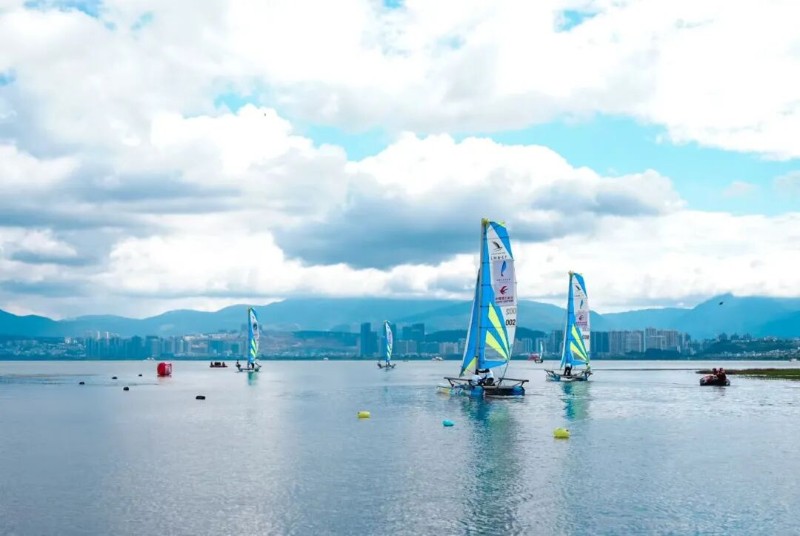在澄江市撫仙湖,帆船產(chǎn)業(yè)的崛起始終與人與自然和諧共生理念相連。2004年,撫仙湖全面禁止機(jī)動(dòng)船入湖,多數(shù)人視之為瓶頸,而云湖水上運(yùn)動(dòng)有限公司撫仙湖帆船基地創(chuàng)始人鄧新強(qiáng)卻敏銳發(fā)現(xiàn)機(jī)遇——以風(fēng)為動(dòng)力的帆船零排放,且撫仙湖常年穩(wěn)定的西南風(fēng)與Ⅰ類水質(zhì),是天然的航行賽場(chǎng)。“當(dāng)時(shí)全國(guó)內(nèi)陸湖泊搞帆船的很少,高原湖泊更是空白,這正是我們的機(jī)會(huì)?!?013年12月,鄧新強(qiáng)在澄江市??阪?zhèn)矣渡村創(chuàng)立撫仙湖帆船基地。12年間,基地從幾條帆船發(fā)展到全湖100余條,從單一體驗(yàn)項(xiàng)目升級(jí)為集競(jìng)技、培訓(xùn)、休閑于一體的完整業(yè)態(tài)。