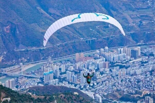 游客在怒江傈僳族自治州體驗(yàn)滑翔傘。圖源:人民日?qǐng)?bào)