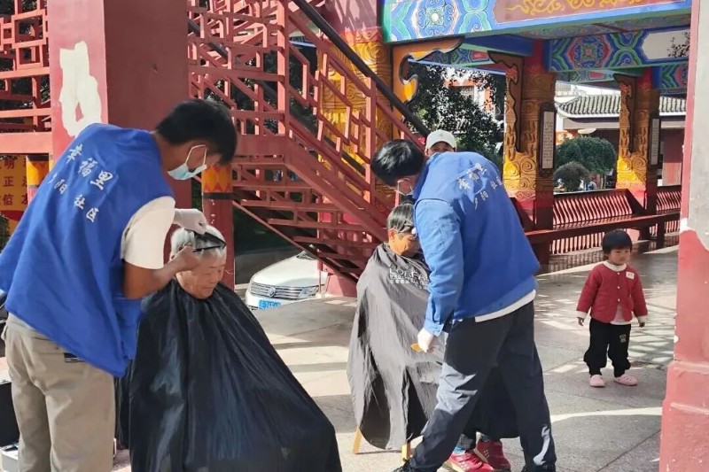 剪刀翻飛間,原本凌亂的頭發(fā)就被志愿者理發(fā)師打理得整齊利落,老人們看著鏡子里的新發(fā)型,臉上洋溢著滿意的笑容?!斑@些小伙子剪頭發(fā)剪得很好,我們剪頭發(fā)也方便多了,真正地讓我們感受到了社會的溫暖。”