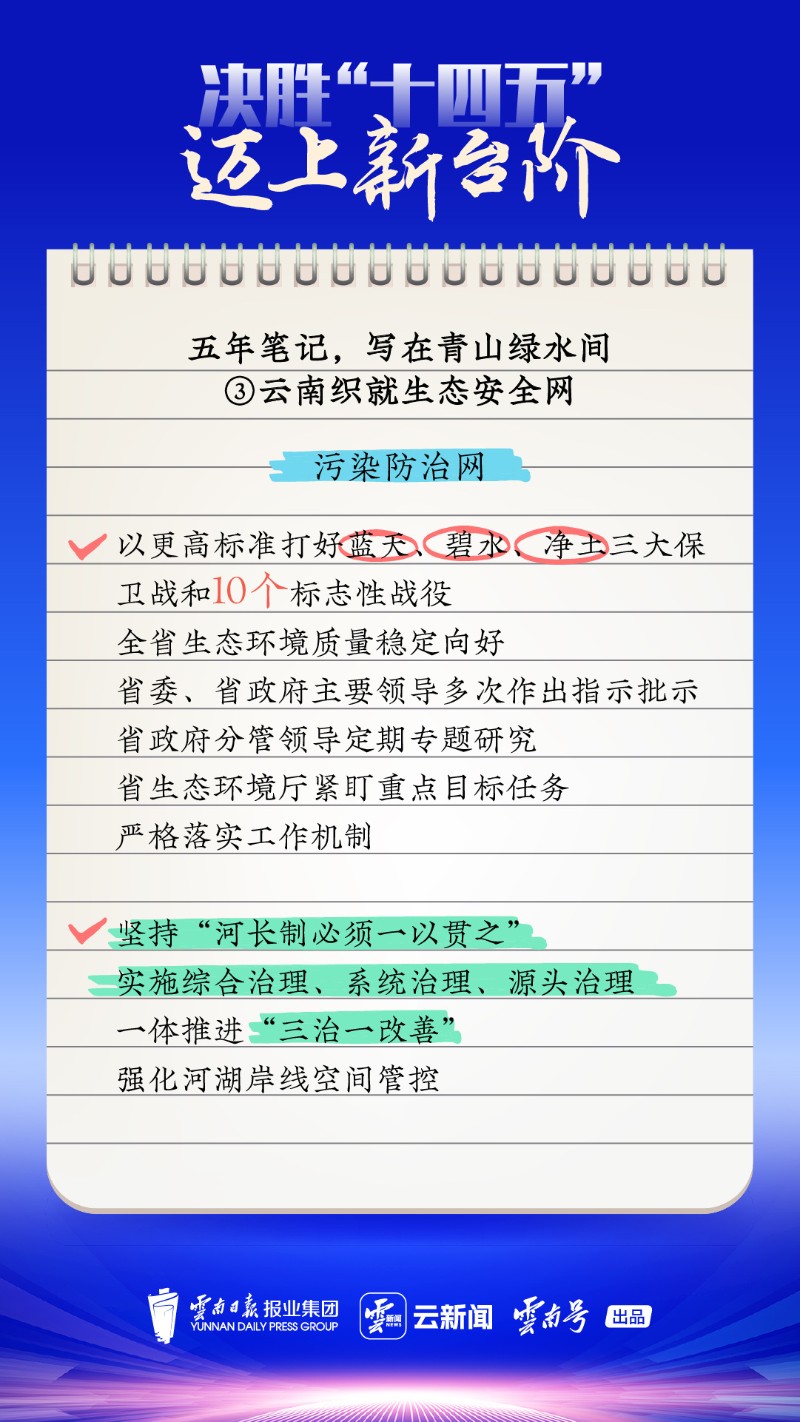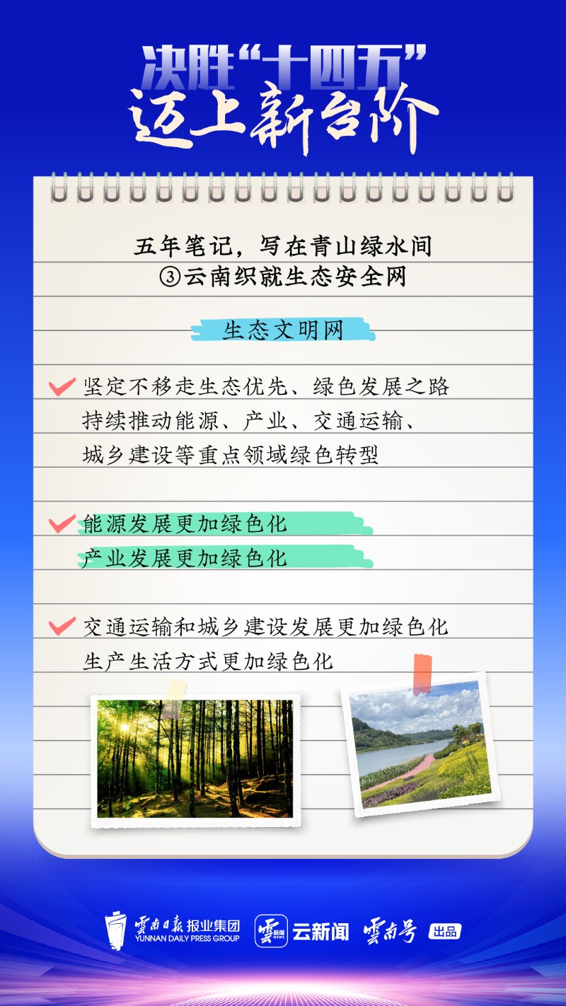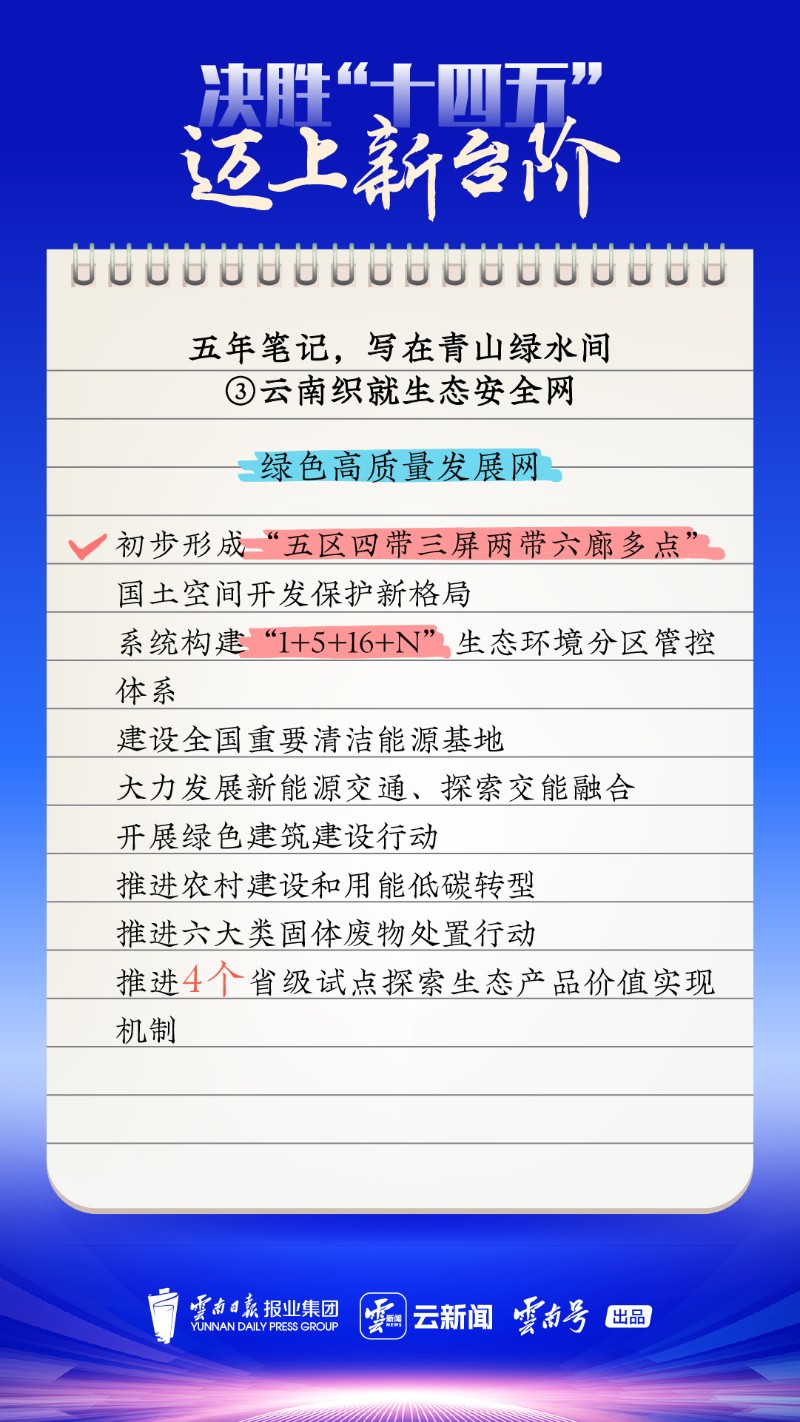 “十四五”時期,省委、省政府深入學(xué)習(xí)貫徹習(xí)近平總書記考察云南重要講話精神,始終牢記習(xí)近平總書記殷殷囑托,緊緊圍繞生態(tài)文明建設(shè)排頭兵的戰(zhàn)略定位,堅(jiān)定不移走生態(tài)優(yōu)先、節(jié)約集約、綠色低碳發(fā)展道路,全力筑牢國家西南生態(tài)安全屏障,推動全省生態(tài)文明建設(shè)取得顯著成效。