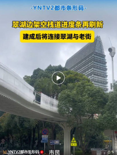 后期,架空棧道將與人行天橋連通,市民可經(jīng)棧道從黃公東街一直步行到五華區(qū)政府廣場,進而通往云瑞西路、云瑞東路,昆明老街一線。棧道啟用后,市民游客不用過街穿行,就可以從五華區(qū)政府廣場旁的天橋沿著架空棧道一路前往老街或翠湖。同時,棧道下方還新栽種了多棵藍花楹,春末夏初,可近距離欣賞藍花楹美景。