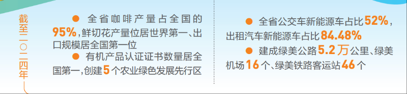 產(chǎn)業(yè)發(fā)展更加綠色化。加快推進(jìn)農(nóng)業(yè)結(jié)構(gòu)調(diào)整,“云茶”“云花”“云果”“云藥”享譽(yù)國內(nèi)外,2024年,全省咖啡產(chǎn)量占全國的95%,鮮切花產(chǎn)量位居世界第一、出口規(guī)模居全國第一位。有機(jī)產(chǎn)品認(rèn)證證書數(shù)量居全國第一,創(chuàng)建5個(gè)農(nóng)業(yè)綠色發(fā)展先行區(qū)。工業(yè)發(fā)展新動能不斷增強(qiáng),“綠電 先進(jìn)制造業(yè)”新優(yōu)勢持續(xù)放大,云南“綠色鋁谷”正在崛起,打造產(chǎn)業(yè)綠色低碳轉(zhuǎn)型載體,啟動建設(shè)15個(gè)省級零碳園區(qū),累計(jì)創(chuàng)建國家級綠色工廠136家、綠色工業(yè)園區(qū)10個(gè),培育綠色供應(yīng)鏈管理企業(yè)7家?,F(xiàn)代服務(wù)業(yè)快速發(fā)展,2024年生產(chǎn)性服務(wù)業(yè)營業(yè)收入規(guī)模達(dá)1.4萬億元,積極推動農(nóng)文旅融合發(fā)展,旅游業(yè)成為萬億級產(chǎn)業(yè),“有一種叫云南的生活”叫響全國,“旅居云南”成為大IP、大市場、大生態(tài)。