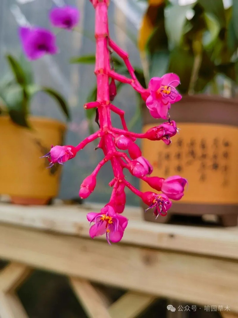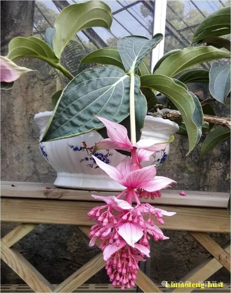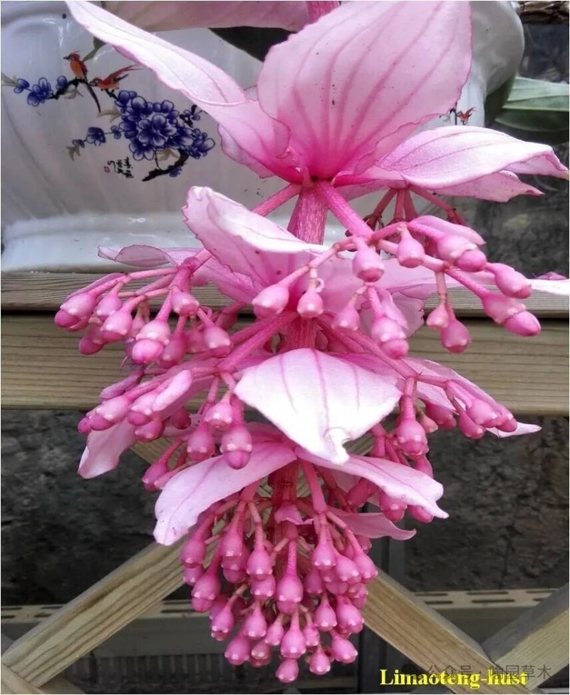 寶蓮燈花學(xué)名為粉苞酸腳桿,又名珍珠寶蓮和美丁花等,為野牡丹科美丁花屬常綠小灌木。第一次見到該植物時(shí)就被其美麗的“姿態(tài)”所吸引。其碩大的花序,形似倒開荷花的苞葉都給我留下了深刻的印象。據(jù)相關(guān)資料描述,因其花序整體上形如傳統(tǒng)的“寶蓮燈”,故得名寶蓮燈花。