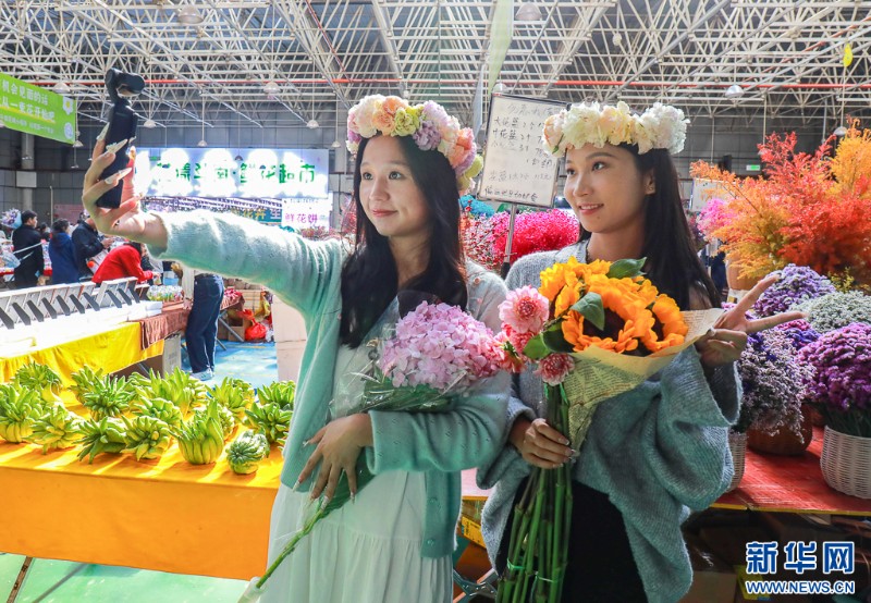游客在昆明斗南花卉市場拍照打卡(10月1日攝)。新華網(wǎng)發(fā)(鄭益 攝)