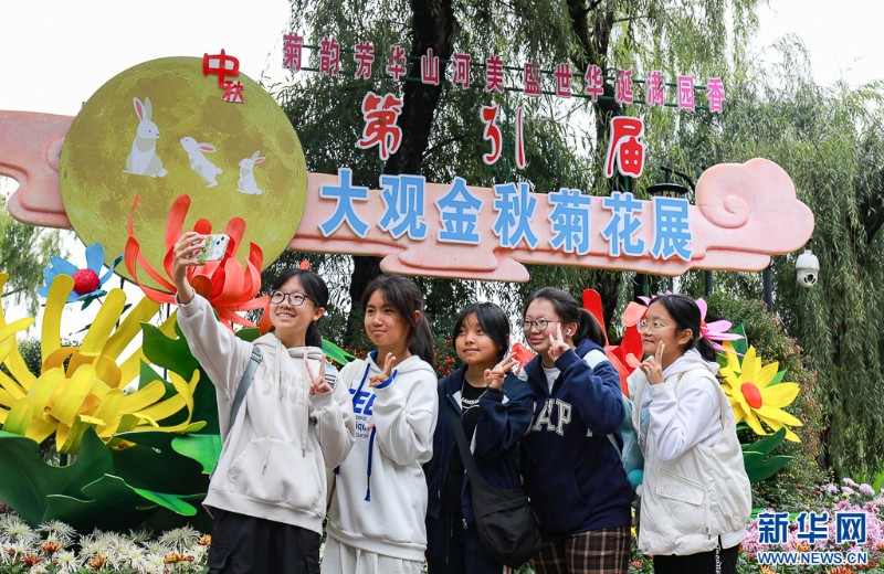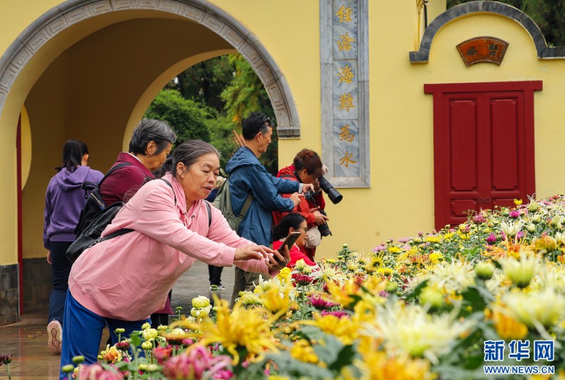前來大觀公園觀賞菊花的游客(10月1日攝)。新華網(wǎng)發(fā)(鄭益 攝)