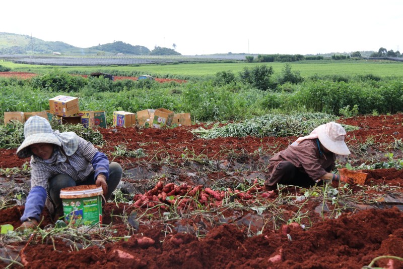 走進基地紅薯田,一壟壟作物長勢喜人,工人們揮動鋤頭的動作嫻熟利落,轉眼便有體態(tài)飽滿、色澤鮮亮的紅薯破土而出,隨后被整齊歸攏至竹筐,由公司專車運往分揀車間,開啟后續(xù)打包流程。