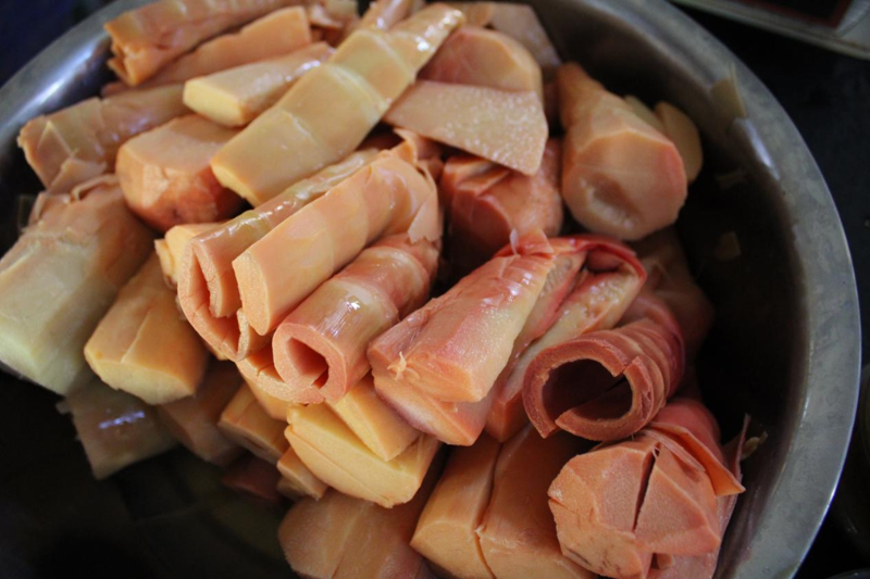 傣族加工酸筍的方法質(zhì)樸且高效,核心工具為瓦壇,分“鮮酸筍”和“干酸筍”兩種形式: