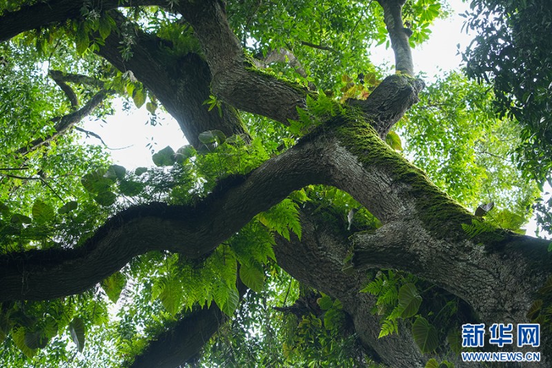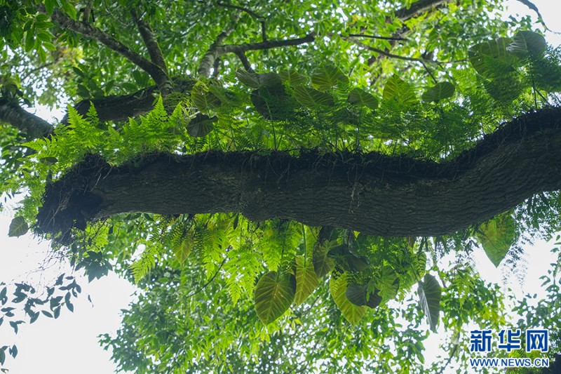 八蕊單室茱萸樹干上分布著各類植物(7月7日攝)。新華網(wǎng)發(fā)(徐華陵 攝)