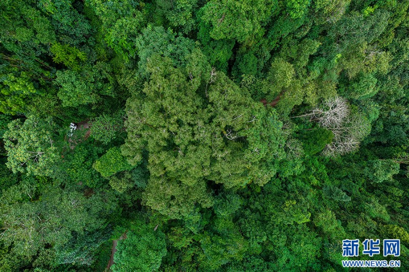航拍下的八蕊單室茱萸枝繁葉茂(7月7日攝)。新華網(wǎng)發(fā)