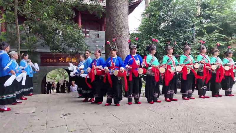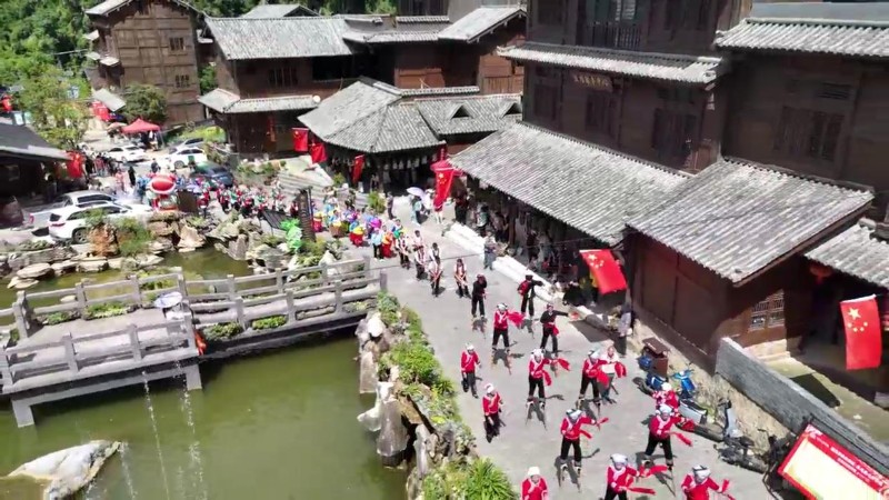 景區(qū)文藝隊(duì)敲鑼打鼓迎客人(陳于銀攝于2025年10月3日)