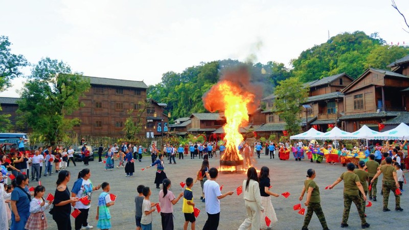 游客參與景區(qū)篝火晚會(何寶健攝于2025年10月3日)