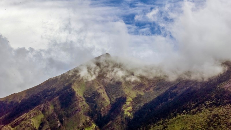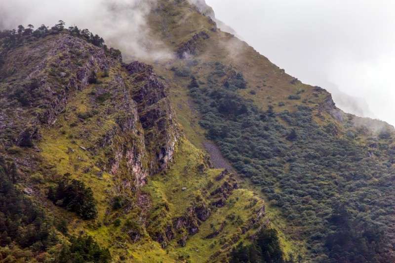 在云南省怒江傈僳族自治州蘭坪白族普米族自治縣,秋意浸染雪邦山,云霧如柔絲纏繞著峰巒。