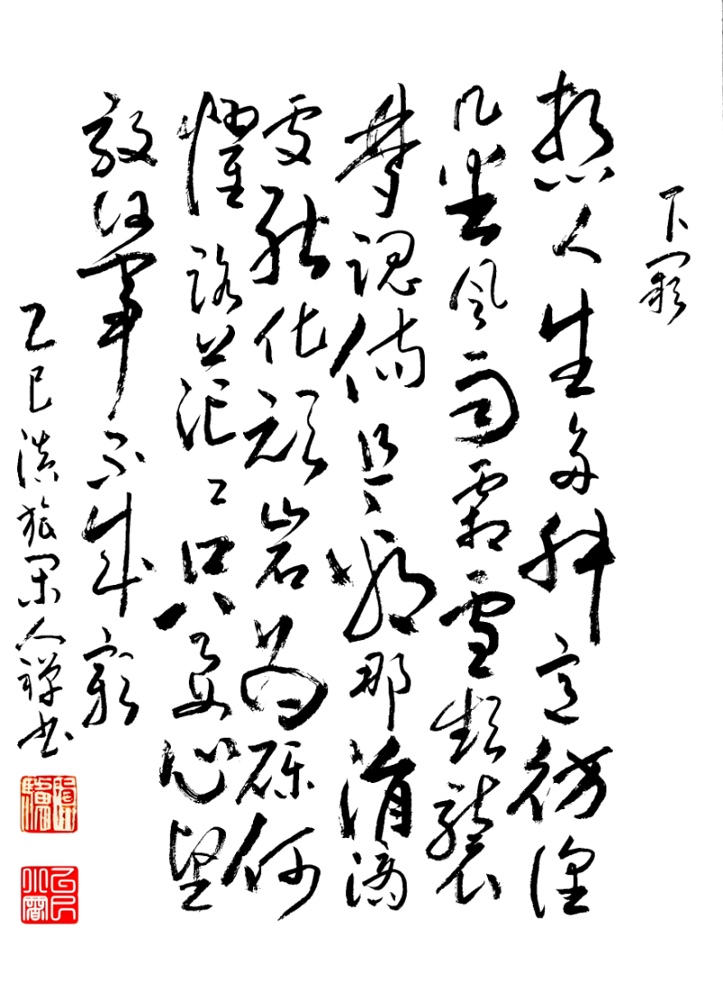 想人生,多舛路,意彷徨。幾番風(fēng)雨,霜雪頻襲夢(mèng)魂傷。且看那涓滴處,能化頑巖為礫,何懼路茫茫。只要心堅(jiān)毅,何事不成彰?