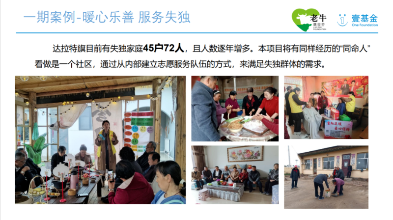 在內(nèi)蒙古民政廳指導(dǎo)下,老?;饡?huì)與壹基金聯(lián)合發(fā)起內(nèi)蒙古全區(qū)“社區(qū)賦能支持計(jì)劃”,通過(guò)“賦能培訓(xùn)”促進(jìn)社會(huì)組織能力提升、通過(guò)“資金支持”推動(dòng)社區(qū)慈善創(chuàng)新實(shí)踐,助力社區(qū)民生服務(wù)改善。2023年以來(lái),聯(lián)動(dòng)全區(qū)378家社會(huì)組織參與了賦能培訓(xùn),支持在“兒童保護(hù)、老人幫扶、社區(qū)安全、社區(qū)文化建設(shè)”等方面開(kāi)展慈善項(xiàng)目,與全區(qū)1075個(gè)社工站點(diǎn)聯(lián)合、服務(wù)3225個(gè)社區(qū),受益人超過(guò)142萬(wàn)人次。