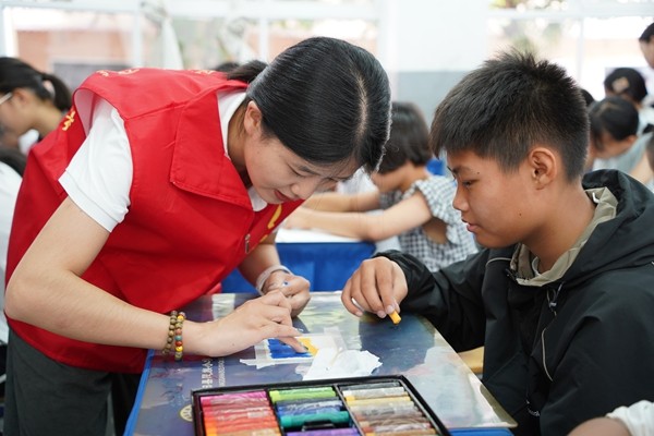 元陽民族小學(xué)的夏令營,更是志愿青春的生動(dòng)注腳。云南師范大學(xué)生命科學(xué)學(xué)院19名志愿者與本地11名選調(diào)生攜手,為90余名學(xué)齡兒童開設(shè)扎染、漆扇制作、油畫等特色課程,同時(shí)提供作業(yè)輔導(dǎo)與課外閱讀指導(dǎo)。孩子們?cè)趧?dòng)手實(shí)踐中提升創(chuàng)造力,家長反映孩子們從“沉迷手機(jī)”轉(zhuǎn)變?yōu)椤捌诖险n”,學(xué)習(xí)興趣顯著提高。志愿者們表示,看到孩子們的成長與進(jìn)步,深刻體會(huì)到志愿服務(wù)的價(jià)值,既傳遞了知識(shí),也收獲了自身的成長。