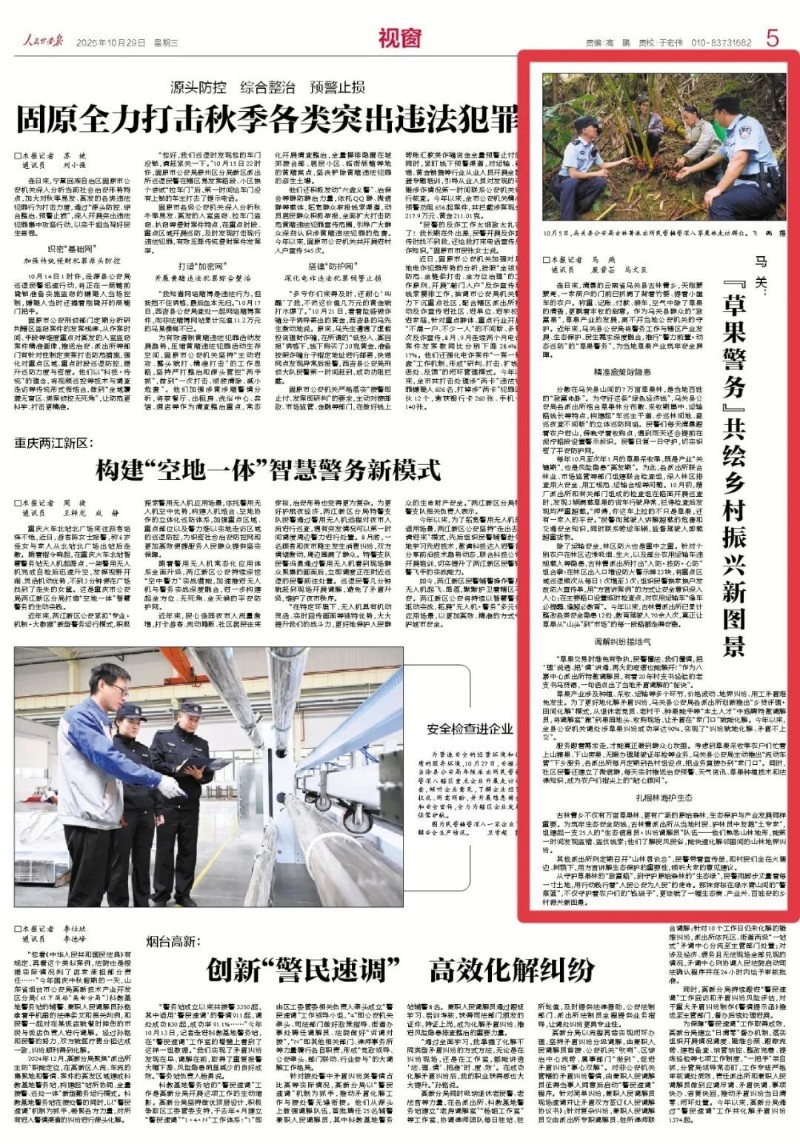 從守護草果林的“致富路”,到守護原始森林的“生態(tài)綠”,民警用腳步丈量著每一寸土地,用行動踐行著“人民公安為人民”的使命。那抹穿梭在綠水青山間的“警察藍”,不僅守護著農(nóng)戶們的“錢袋子”,更繪就了一幅生態(tài)美、產(chǎn)業(yè)興、百姓安的鄉(xiāng)村振興新圖景。
