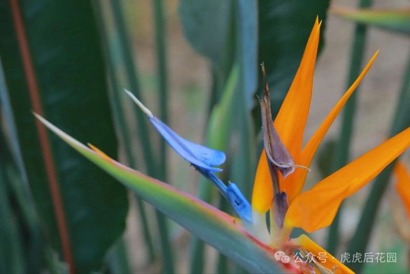 注意,藍(lán)色的才是鶴望蘭的花瓣,橙黃色的是鶴望蘭的萼片。