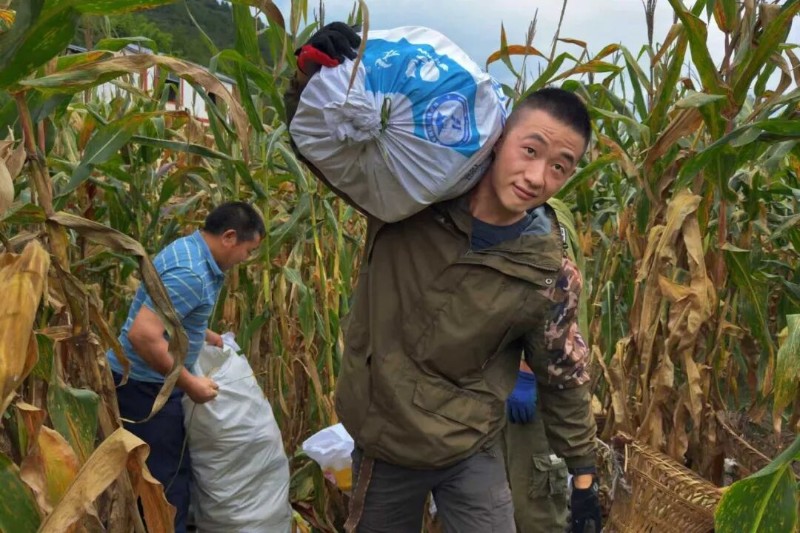 幫助村民田小會(huì)收玉米的場(chǎng)景。