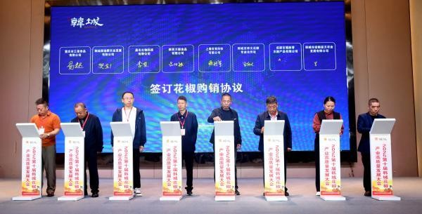 大會(huì)還舉行了授牌儀式,陜西省花椒及制品質(zhì)量檢驗(yàn)檢測中心在韓城掛牌成立;發(fā)布了陜西省地方標(biāo)準(zhǔn)《地理標(biāo)志產(chǎn)品質(zhì)量要求 韓城大紅袍花椒》修訂版;頒發(fā)了韓城花椒產(chǎn)業(yè)發(fā)展專家顧問聘書,簽訂了花椒銀行交割倉項(xiàng)目協(xié)議、韓城花椒冷鏈倉儲(chǔ)建設(shè)項(xiàng)目協(xié)議和韓城大紅袍花椒及精深加工產(chǎn)品購銷協(xié)議14項(xiàng),購銷總金額約2.8億元。