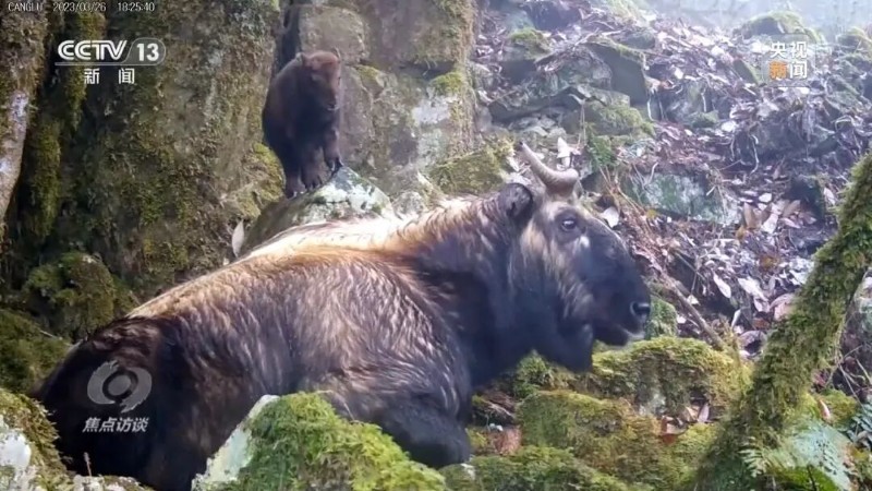 云南高黎貢山國家級自然保護區(qū)貢山管護分局 生物多樣性研究所所長 胼立:我們布設了一些紅外相機來監(jiān)測貢山羚牛。在2011年的時候它的種群數(shù)量是450頭左右,現(xiàn)在已經監(jiān)測到800多頭。它是高黎貢山體型最大的草食動物,人類是它最大的威脅之一。