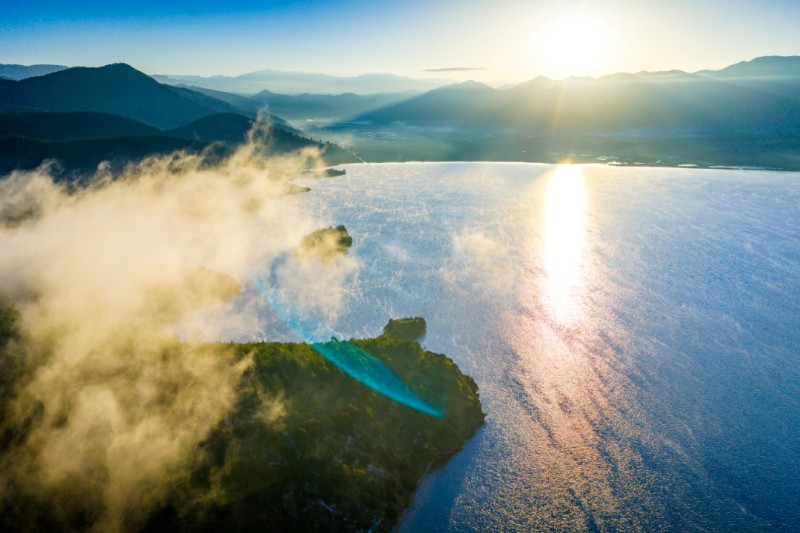 換個視角瞰湖光山色,解鎖“云端瞰湖”的全新視角。坐上索道可以在高空俯瞰瀘沽湖的碧藍(lán)湖面,湖水隨光線變化呈現(xiàn)出淺藍(lán)、深藍(lán)、墨綠等多種色彩,也是別有一番意境。