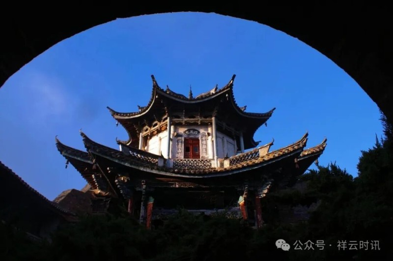攀登至玉皇閣觀景臺,此處是俯瞰云海的絕佳位置,夕陽西沉?xí)r,云霧霞光在山谷間流轉(zhuǎn)渲染,背靠千年古剎拍攝剪影,隨手可得“天空之城”既視感。