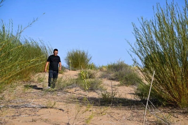 “我是從1997年修建第一條穿沙公路的時候開始治沙,那時候有些不情愿,想著沙漠里能種樹?能修路?這不是開玩笑嗎?那時候只想著逃離沙漠?!卑教馗ɑ貞浾f,隨著第一條公路修通,路兩側(cè)的樹開始有了綠葉,她的觀念開始發(fā)生根本轉(zhuǎn)變。