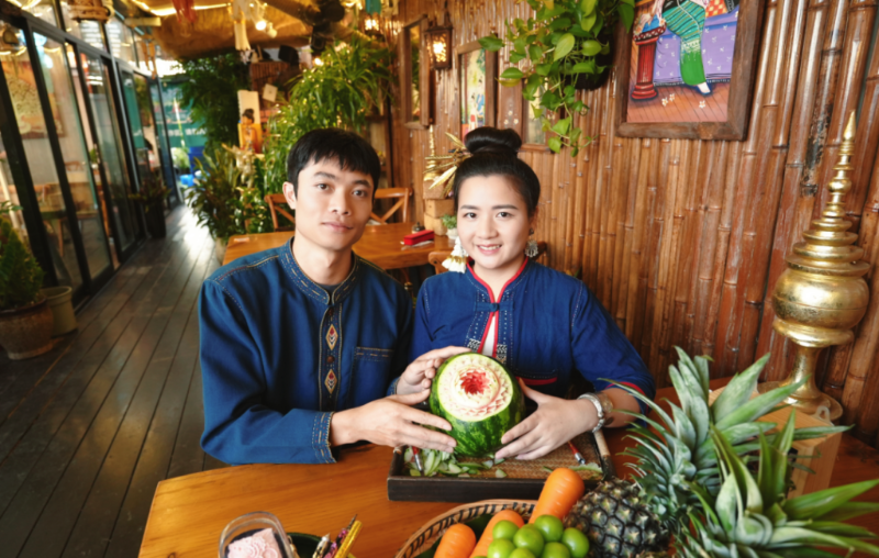 2017年4月,作為一位有著9年雕刻技藝的手藝人,來自泰國清邁的姑娘艾莎灣·撒迪恩受邀參加活動,第一次踏足西雙版納。因為相似的氣候景觀、熱情好客的人們,她在這片土地上找到了歸屬感,便留下來工作,至今已8年。業(yè)余時間,她還認真學習中文,積極參與當地文旅和教育部門舉辦的東南亞文化展示活動,希望能為中泰文化交流貢獻自己的一份力量。