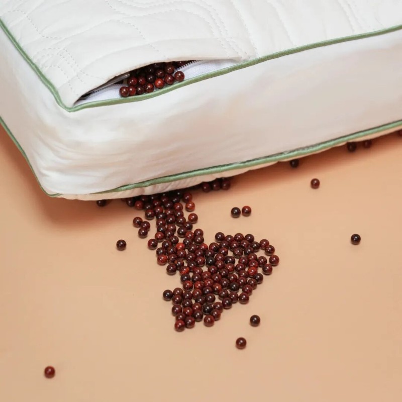 《本草綱目》記載小葉紫檀: “能安神、止血、定痛,久服益人”。檀錦閣將千年成材的小葉紫檀雕琢成圓潤的顆粒,顆顆如濃縮的自然精華膠囊,在枕芯中構(gòu)建起會呼吸的養(yǎng)生矩陣。這些浸潤著歲月靈氣的木質(zhì)木珠,攜帶著多酚類與倍半萜類等天然活性因子,通過溫?zé)醾鲗?dǎo)與呼吸韻律編織成環(huán)環(huán)相扣的「睡眠養(yǎng)生閉環(huán)」將傳統(tǒng)紅木智慧與現(xiàn)代睡眠需求融合在一起。