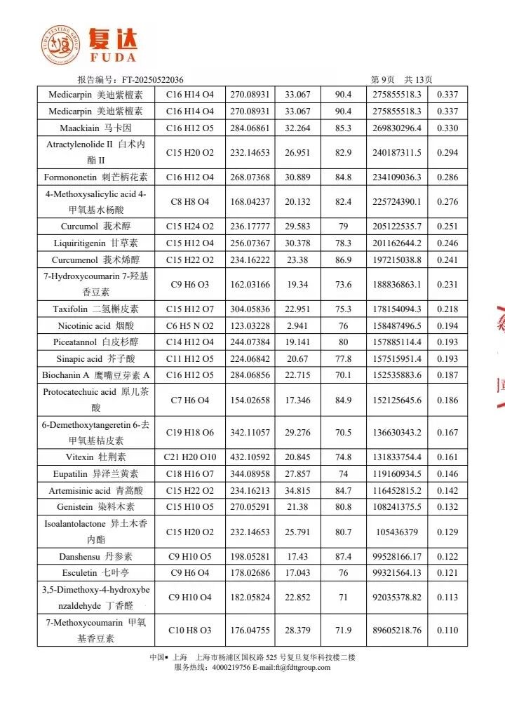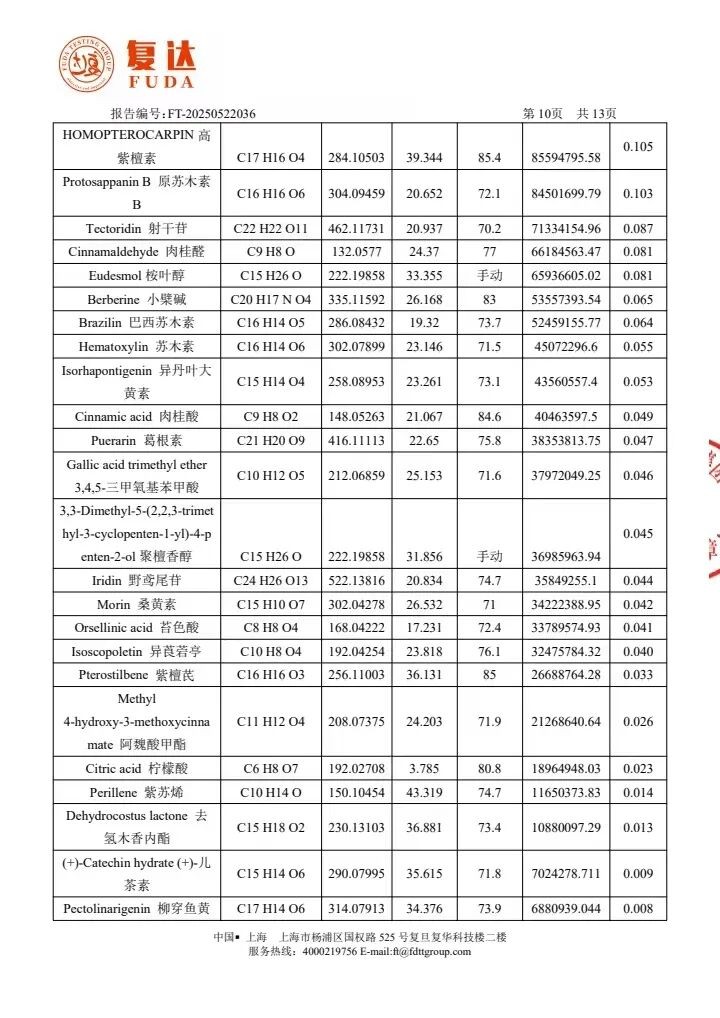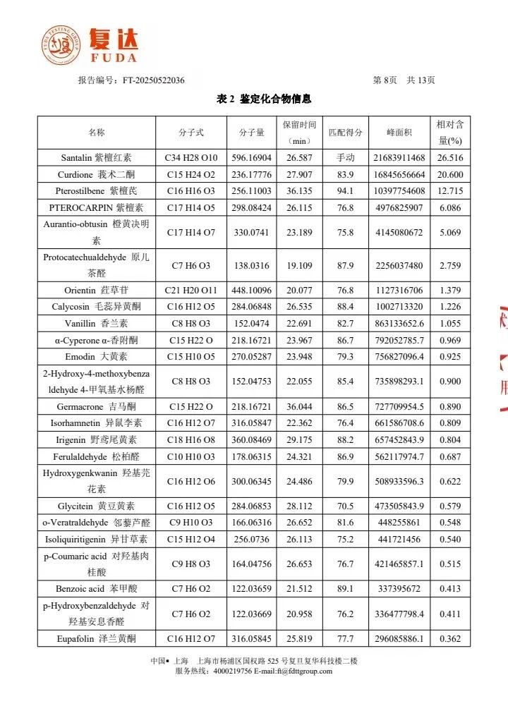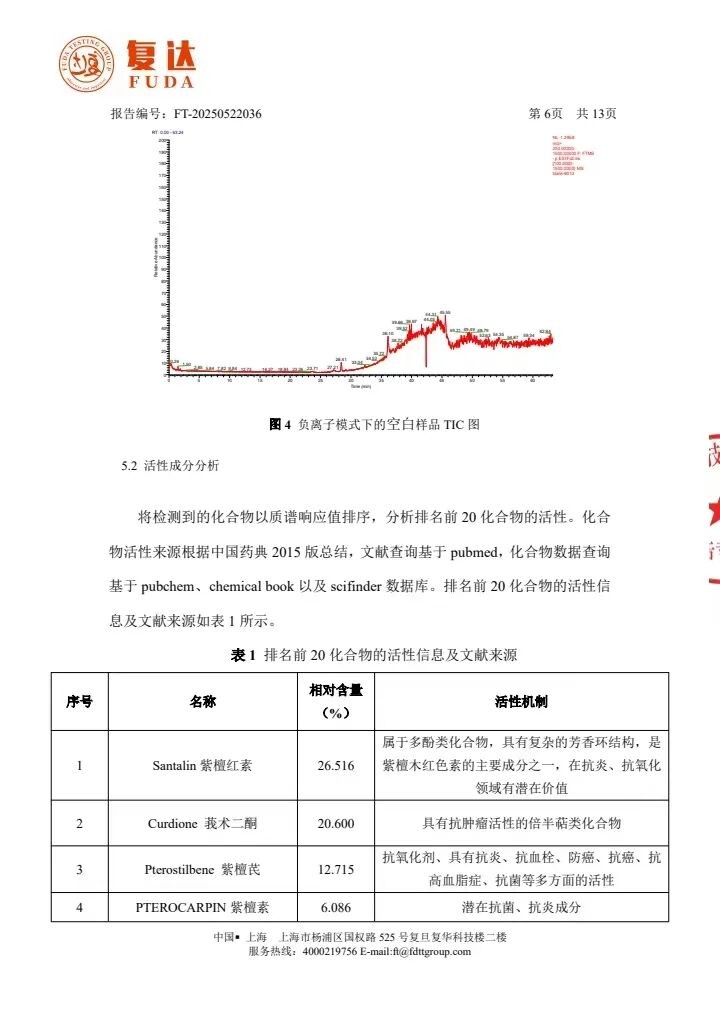 成分含量紫檀紅素(26.516%)抗氧化能力強,能中和體內(nèi)自由基(如超氧陰離子、羥基自由基等),減少氧化應(yīng)激對細胞和組織的損傷??汕宄i部自由基,減緩頸紋生成;