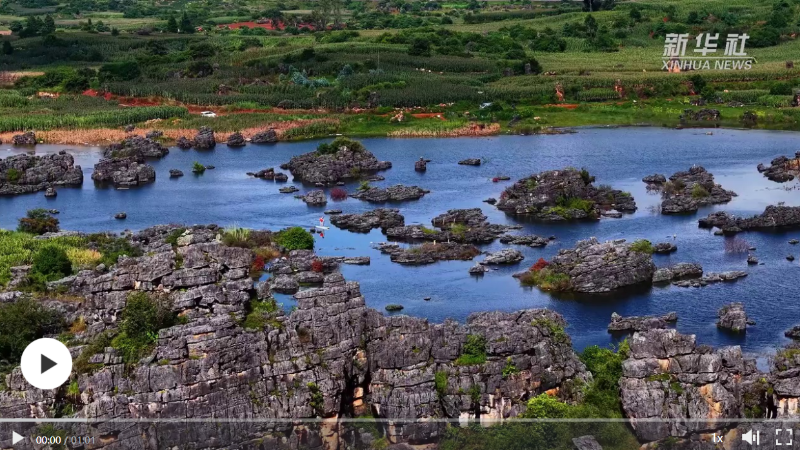 國慶中秋雙節(jié)去哪兒玩?云南石林“靜候”游客前來。近期,因降水充沛,在云南省昆明市石林彝族自治縣蓑衣山,已形成占地50余畝,平均水深約5米的季節(jié)性水上喀斯特景觀。