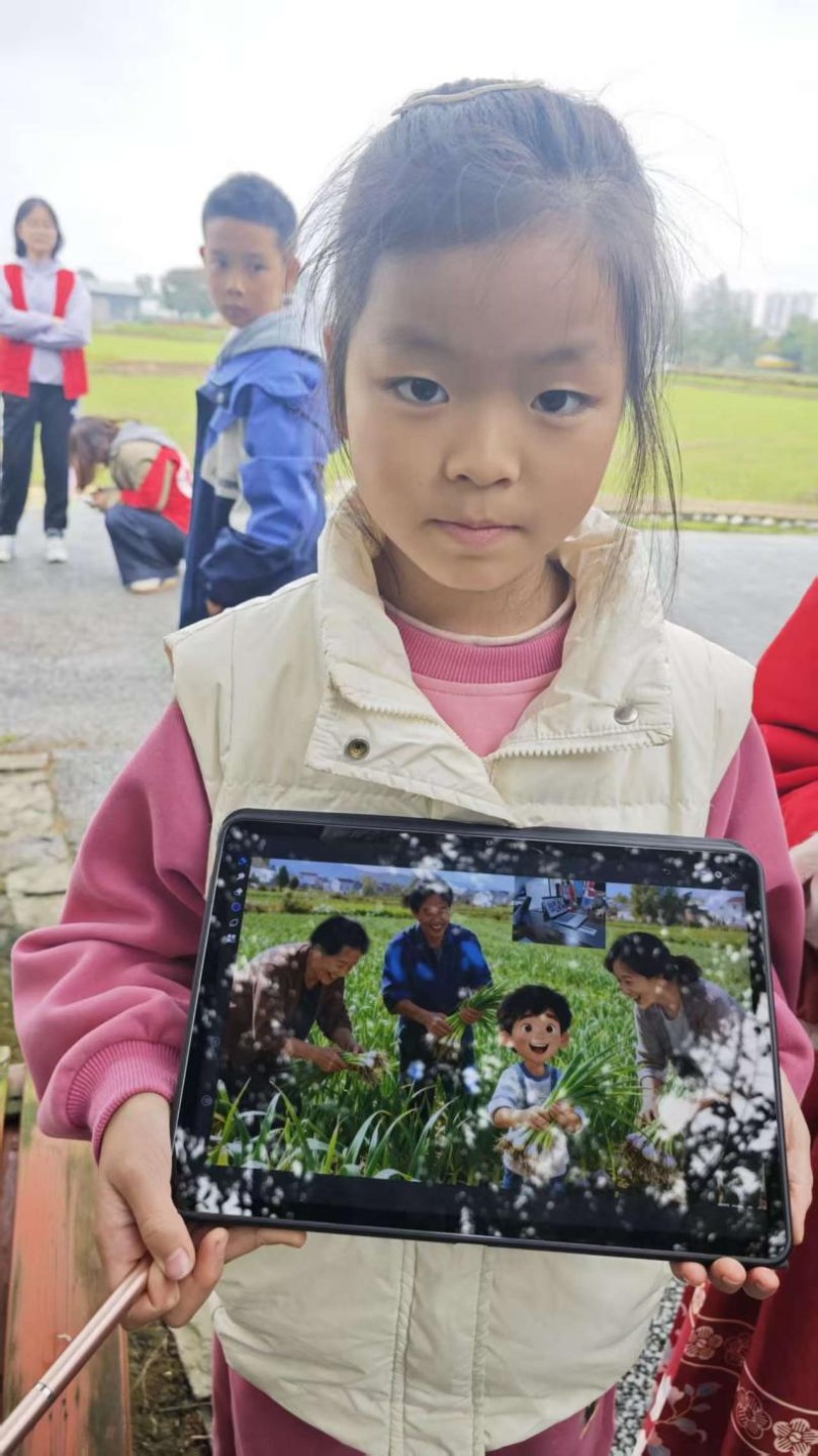 漫步東林村田野的環(huán)節(jié)成為活動“高光時刻”。在工作人員與老師的引導下,親子家庭穿梭于蒜田,仔細觀察蒜苗的形態(tài)、枝頭的飛鳥、路邊的小花,并用平板電腦實時記錄眼中的自然景致。“我要把蒜苗和蝴蝶畫在一起!”小朋友們興奮地投入創(chuàng)作,家長在旁協(xié)助調(diào)整色彩,溫馨的互動場景隨處可見。
