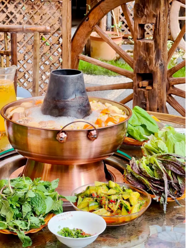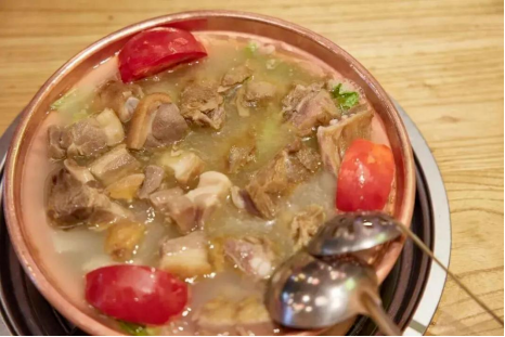 納西銅火鍋:納西銅火鍋堪稱麗江宴席的“鎮(zhèn)桌之寶”,它以紫銅鍋為烹飪器具,底層鋪陳酸菜、芋頭和粉絲,中層碼放臘排骨與三川火腿,頂層擺放酥肉和土雞,注入泉水后用炭火慢燉而成。