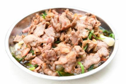 華坪炒滑肉:炒滑肉是華坪縣的一道美食。肉片里加入蒜瓣、姜絲、辣椒等簡單的調(diào)料,再混合著米湯均勻攪拌,揉捏使其恰如其分結(jié)合。柴火熱鍋,將肥肉放入鍋中熬出油,混合提前熬制的油渣,加入食材翻炒,瞬間涌起濃郁的香氣。炒滑肉瘦肉香嫩,肥肉酥脆,嘗一口便念念不忘。