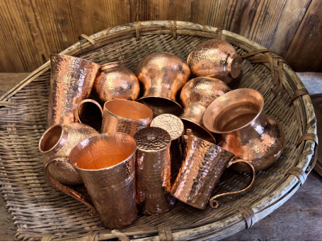 納西銅器:手工打制的銅壺、銅杯泛著溫潤包漿,用它溫茶煮咖啡,每一口都帶著匠人的心意與時光的厚重。