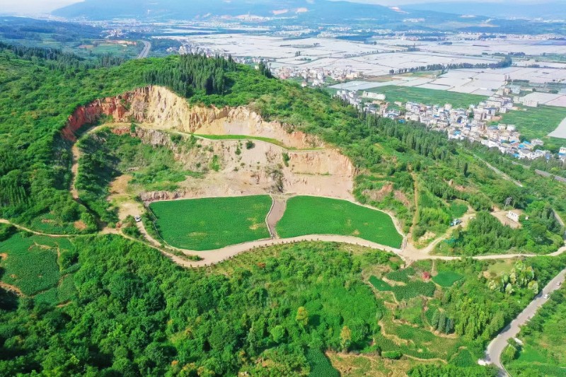 項目創(chuàng)新融合“分級削臺+客土回填+截排水系統(tǒng)+植被重建”技術(shù)體系,并將海綿城市理念引入礦山修復(fù),修建截排水溝、沉砂池等設(shè)施44處,大幅提升區(qū)域水源涵養(yǎng)能力。在植被恢復(fù)方面,優(yōu)選云南松、藏柏、車桑子等鄉(xiāng)土樹種構(gòu)建生態(tài)防護骨架,結(jié)合“喬木固坡、灌木護坡、草本覆綠”的立體種植模式,并搭配格?;ǖ扔^賞草本花卉。據(jù)悉,項目累計種植各類苗木逾2.3萬株,修復(fù)面積達776畝。復(fù)墾區(qū)域覆土厚度達0.5米,土壤有機質(zhì)含量從治理前的0.3%提升至1.8%,達到國家耕地標(biāo)準(zhǔn)。