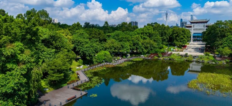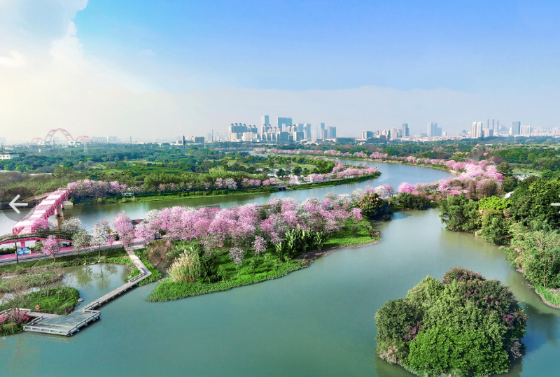 鳧鷺涇附近10畝櫻花林在春天相繼綻放。夏季超一萬平方米荷花綻放。明鏡湖睡蓮超30種。老樹園近百年樹齡的龍眼荔枝默默記錄著嶺南千年農(nóng)業(yè)文化的傳承。