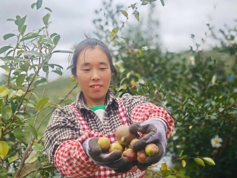 采摘工人們背著背簍靈巧地在樹(shù)影間穿行,雙手翻飛間,一顆顆成熟的油茶果輕快地落入背簍中,確保每一份收成都“顆粒歸倉(cāng)”。