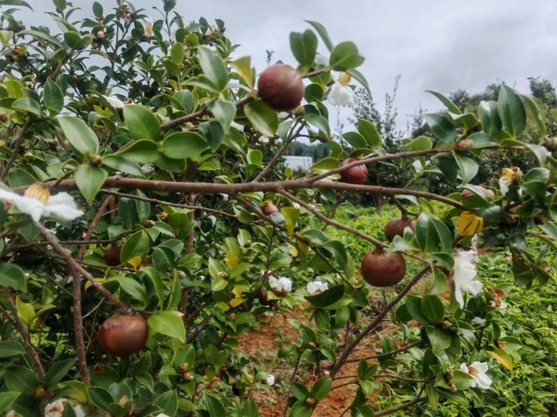 在廣南縣楊柳井鄉(xiāng)普弄村千畝“油茶 中藥材”種植基地,漫山遍野的油茶樹(shù)枝繁葉茂、碩果壓枝。