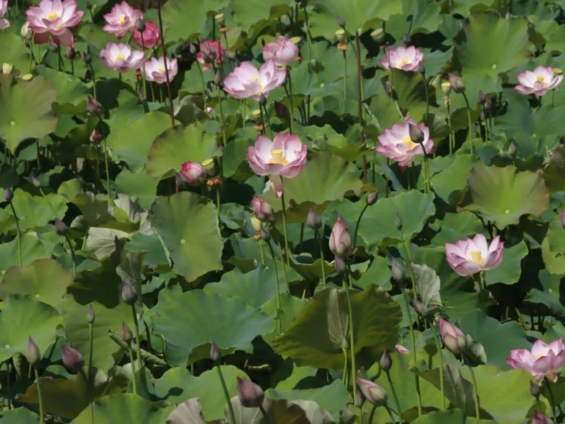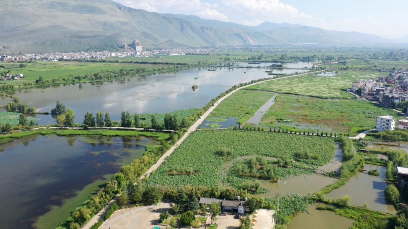 夏日的西草海是荷花的主場。粉嫩的花苞從綠傘般的荷葉間探出頭來,風(fēng)過處送來陣陣荷香,荷葉舒展如碧濤,與遠處的白族民居相映成趣,繪就最動人的田園畫卷。