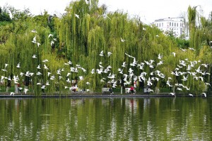 紅嘴鷗飛臨翠湖 ■ 都市時(shí)報(bào)全媒體記者 唐芊