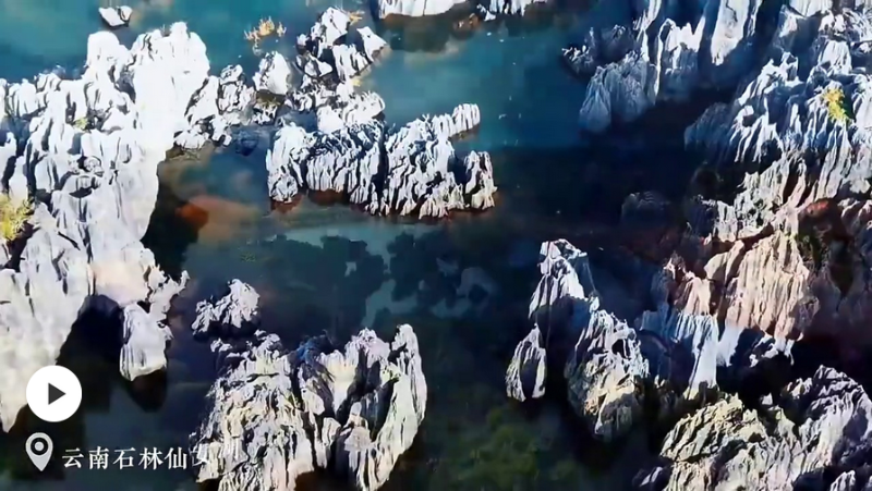 航拍云南石林仙女湖!碧水映奇峰如湖中石森林