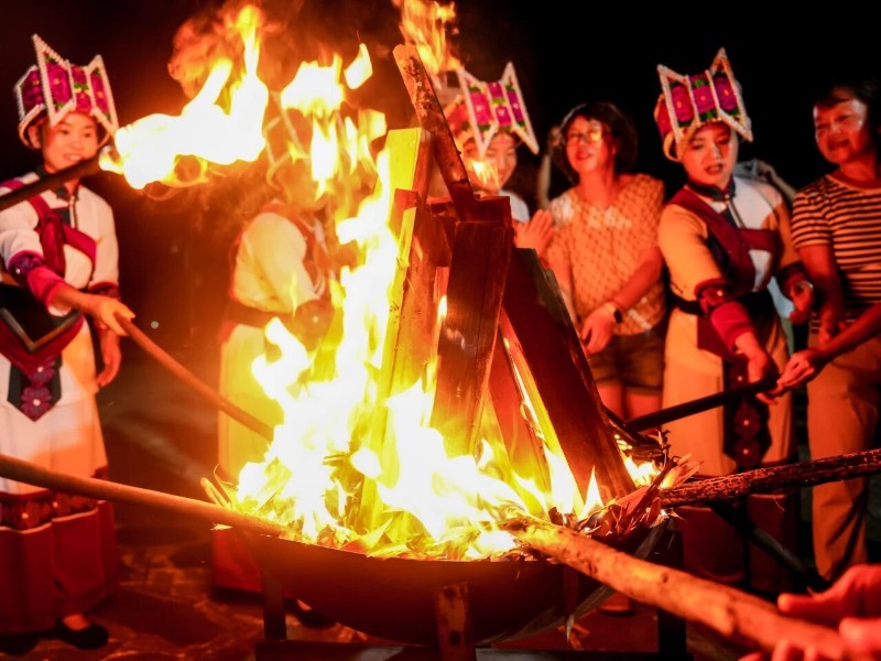 傍晚時分,圍著篝火,跟著大三弦的歡快節(jié)奏起舞,笑聲與樂聲交織,滿是彝家暖意。