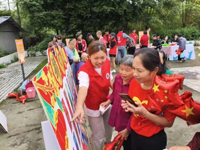 除了公益集市,一場由村民自編自導的“金柏歡歌慶盛世,祖國華誕頌山河”主題國慶文藝匯演也在村廣場熱鬧開啟。集體舞、模特走秀、小品、舞臺劇……一個個精彩絕倫的節(jié)目輪番登場,贏得了在場觀眾陣陣掌聲。特別是伴隨著《我的中國心》歌曲旋律響起,村民們也放聲跟唱,歌聲匯聚成愛國暖流。此外,活動期間開展的國慶知識問答環(huán)節(jié),也引發(fā)村民踴躍搶答、積極參與。