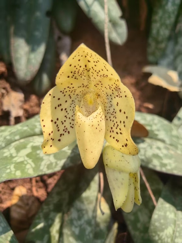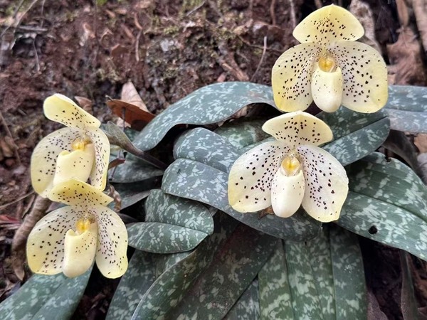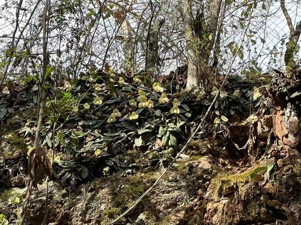 近期,在元江縣甘莊街道干壩社區(qū)的一片石灰?guī)r山坡上,國家一級保護(hù)野生植物文山兜蘭迎來花期,黃色的花瓣與同期生長的陳氏蘇鐵共同構(gòu)成獨特的生態(tài)景觀。
