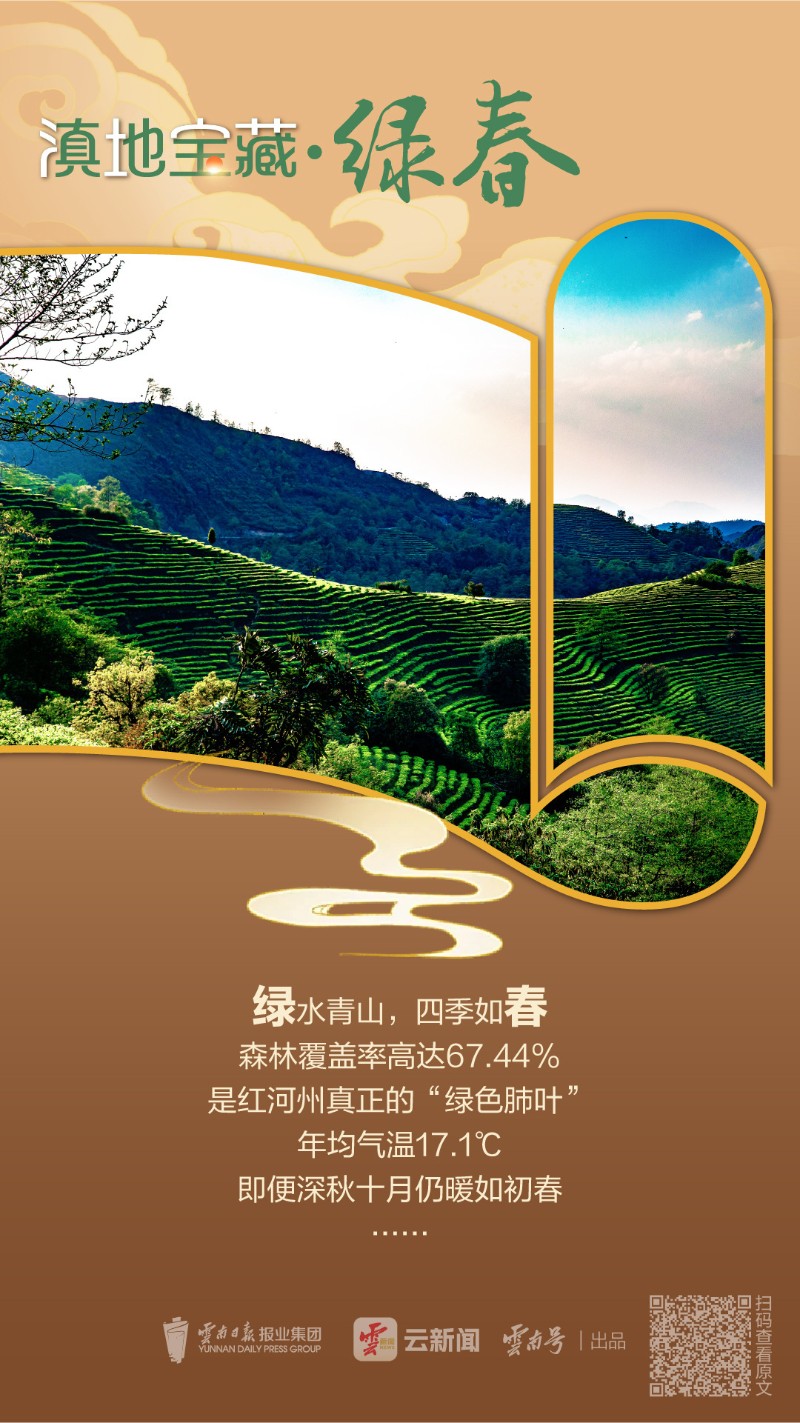 草木為名,生機為韻。作為“滇地寶藏”中生機勃勃的綠色樣本:這里森林覆蓋率高達67.44%,是紅河州真正的“綠色肺葉”;年均氣溫17.1℃,即便深秋十月,仍暖如初春;梯田沿山鋪展,稻浪如鏡,映照著哈尼族千年耕作的智慧;更有瑪玉茶香漫溢山谷,原始森林守護萬物生靈。