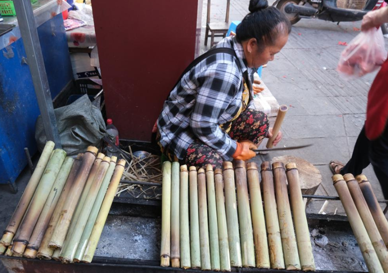 香糯竹是一種竹節(jié)很長的細竹,內(nèi)壁附著一層香氣撲鼻的竹膜,因此有香竹之稱。