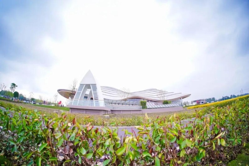 蝶語館是巧妙融合蝴蝶、紗幔等元素的蝴蝶村標志性建筑,輕盈、通透又浪漫,宛如一只五彩蝶翅在水天一色間翩翩起舞。館內(nèi)設(shè)有蜀水文化博物館與非遺文化美學館,系統(tǒng)展示郫都地區(qū)豐富的水文化與非遺藝術(shù);