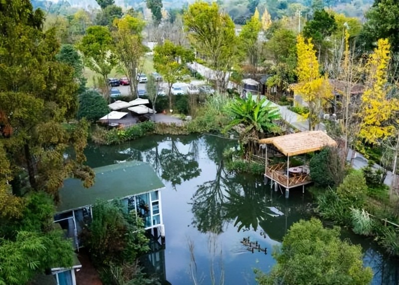 以揚雄文化為根基,依七斗渠而建,二十多年樹齡的楠木、白果、桂花樹環(huán)繞古風小院,是村集體與海外留學青年共創(chuàng)的溫暖空間,共享菜園可體驗耕種,露營區(qū)適合親子撒歡,花園餐廳與共享廚房還能動手做美食,沉浸式感受田園生活;