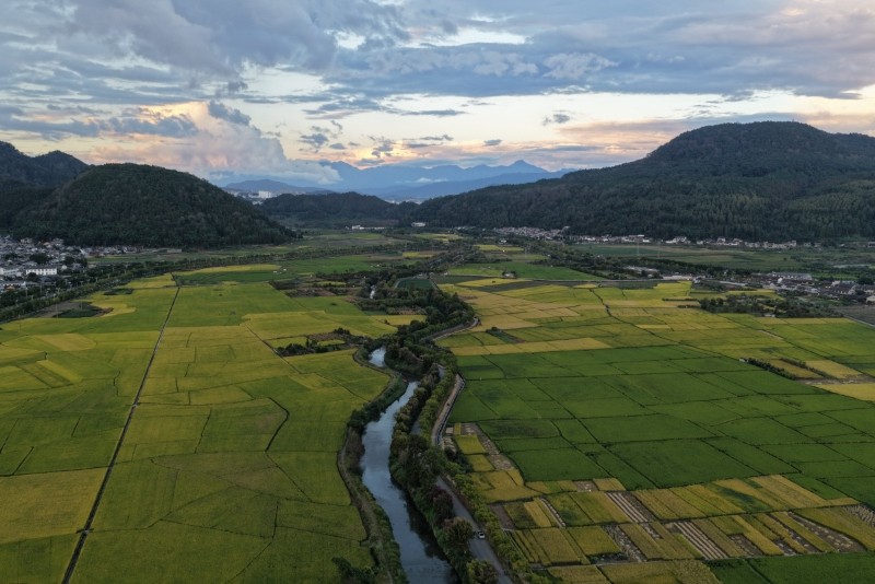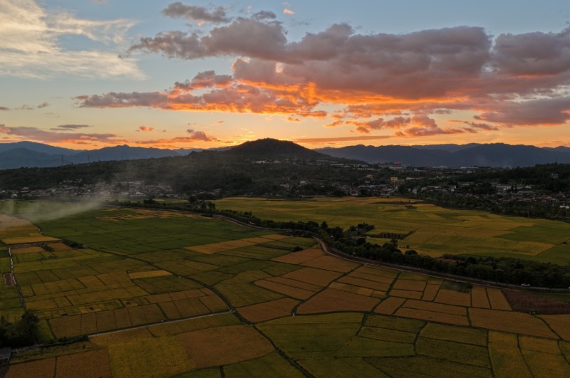 秋高氣爽,走進(jìn)云南省騰沖市和順古鎮(zhèn),稻谷飄香,豐收在望,村莊和田園在藍(lán)天白云映襯下景美如畫。傍晚時(shí)分,夕陽(yáng)的余暉灑向田間,更顯美麗。